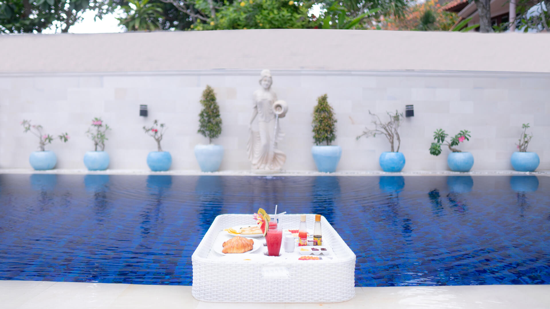 Take a dip in our pool or simply sit back and enjoy the warm Bali weather from one of our many relaxing areas. With its unique Santorini-inspired concept, Yamuna Gangga is the perfect place to relax and rejuvenate.